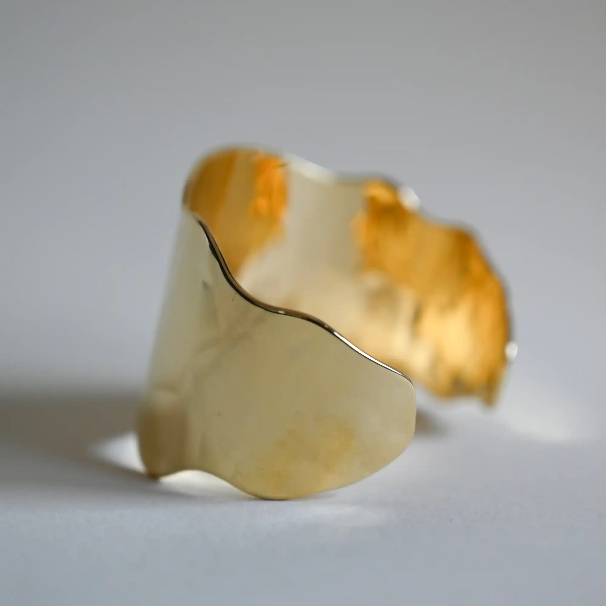Nieregularna linia i lustrzany blask złota – bransoletka Gaia to biżuteria, która wygląda jak rzeźba. Jej niestandardowy kształt przyciąga uwagę i podkreśla indywidualny styl. Idealna do noszenia solo – wystarczy jedna, by nadać stylizacji wyrazistości.