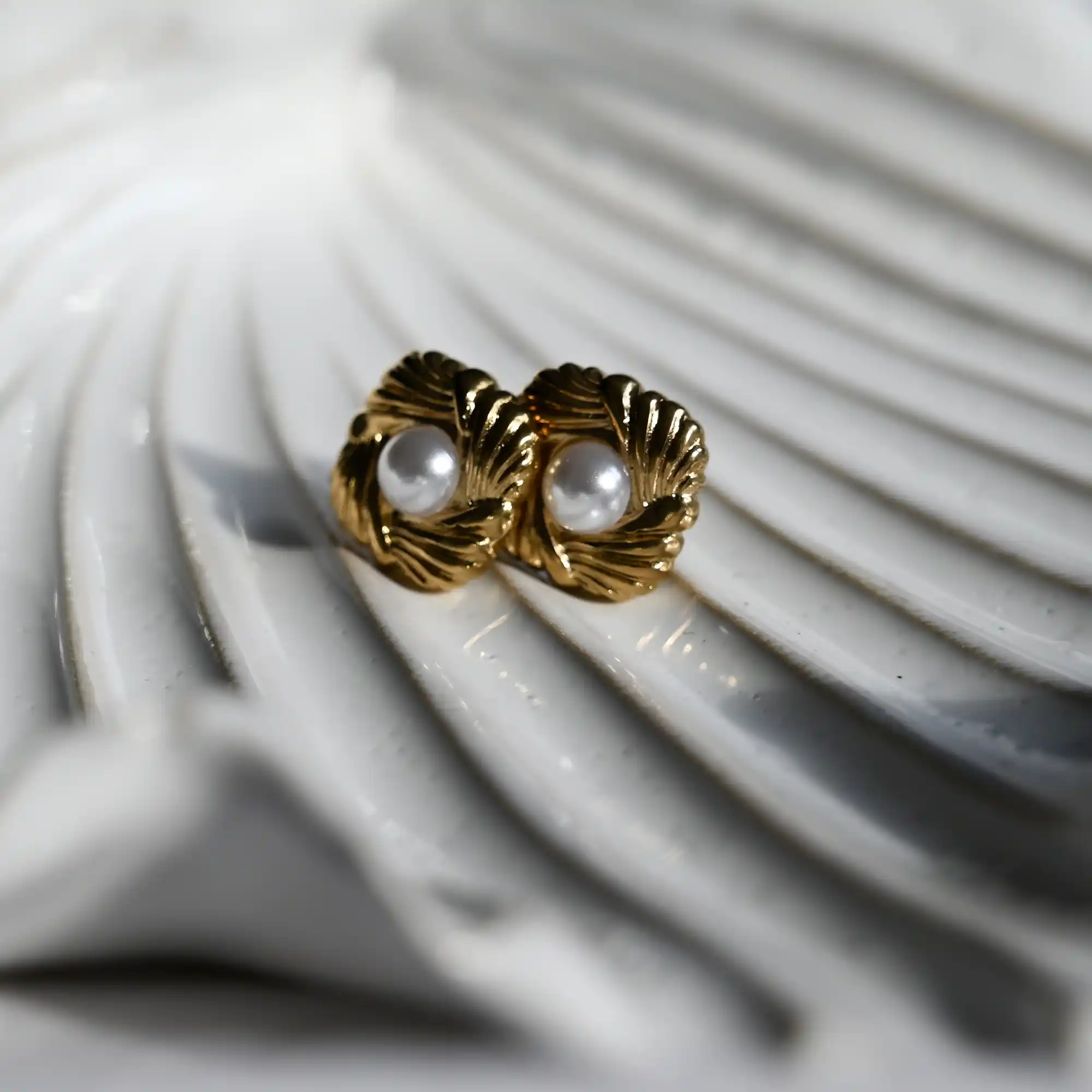 Złote kolczyki z perłą osadzoną w dekoracyjnym splocie przywodzą na myśl styl vintage z nowoczesnym twistem. Delikatne, ale z charakterem – świetnie dopełnią wieczorową stylizację lub dodadzą szyku klasycznej białej koszuli.